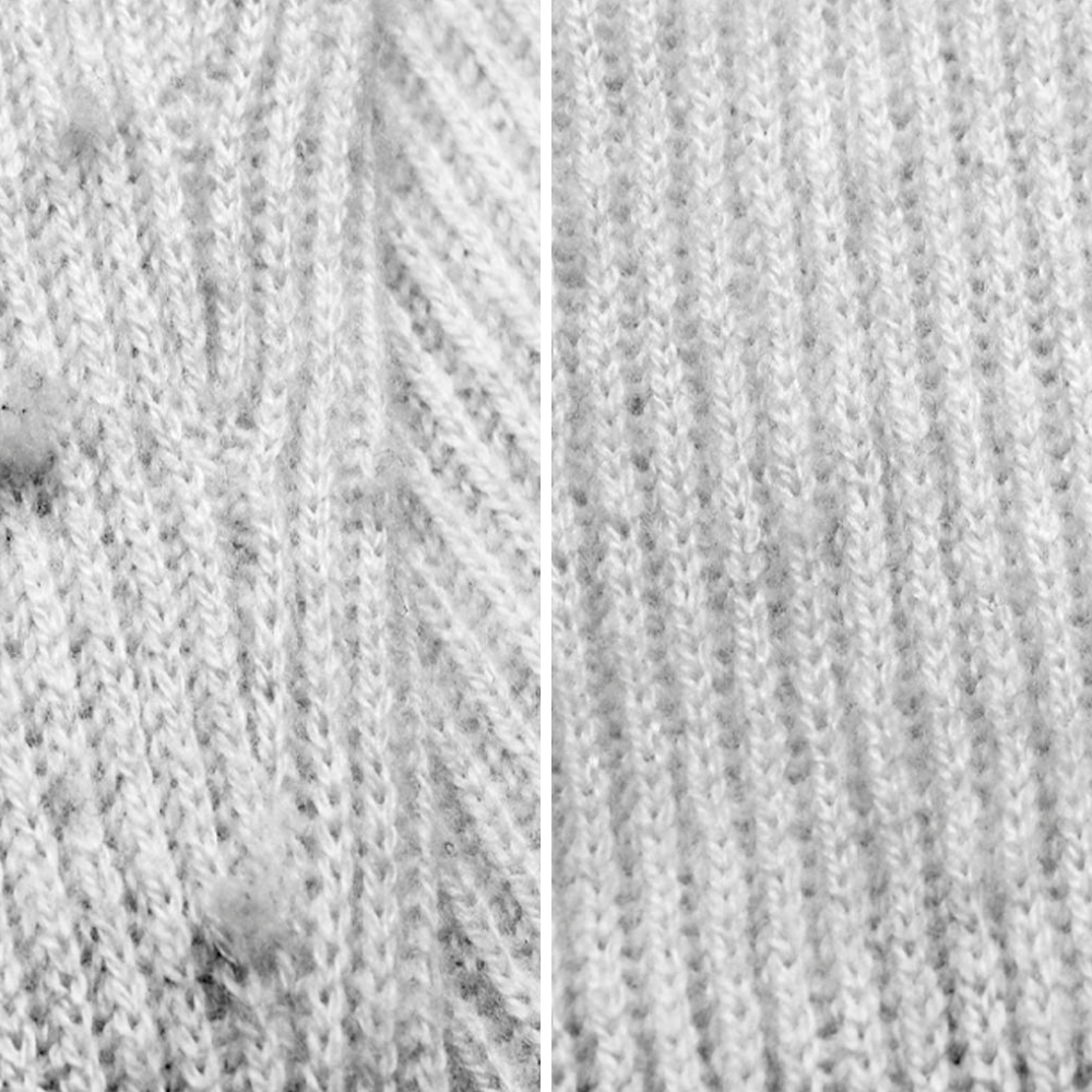 Elimina pelusas y bolitas en segundos sin dañar la ropa.